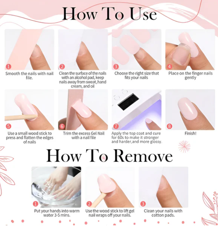Durée : Les faux ongles gel sticker UV durent généralement de 1 à 3 semaines